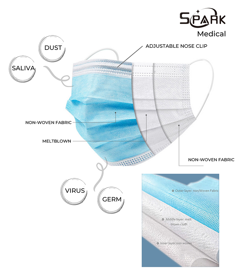 Uses: Effective blocking droplets Reduce inhalation of 0.1 micron particles