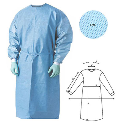 1.Material: 50g SMS, hydrophobic 100% polypropylene 3 layer stuctre- spunbond+meltblown+spunbond breathable, fluid repellent antistatic low linting